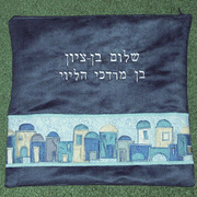 Challah covers and tallit and tefillin bag sets are two of Judy's most popular Judaica gift items. Most gifts can be personalized in English or Hebrew; please contact Judy for specific inquiries.